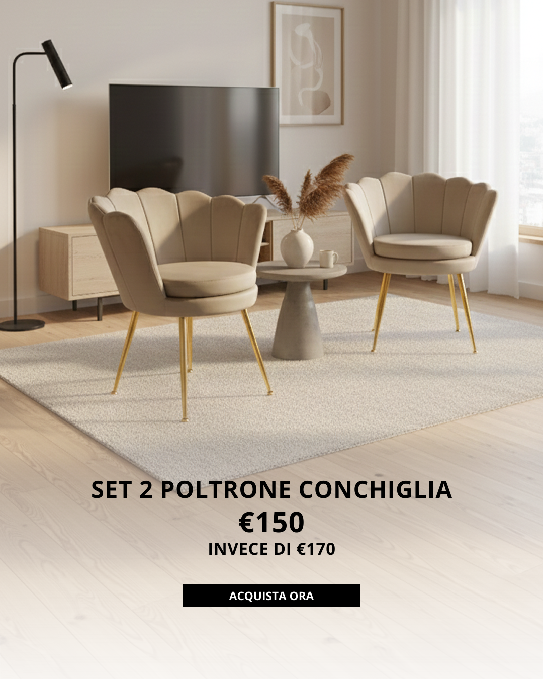 Poltrona in velluto a conchiglia set 2 pezzi tortoraPoltrona in velluto a conchiglia set 2 pezzi tortora- Prezzo regolare