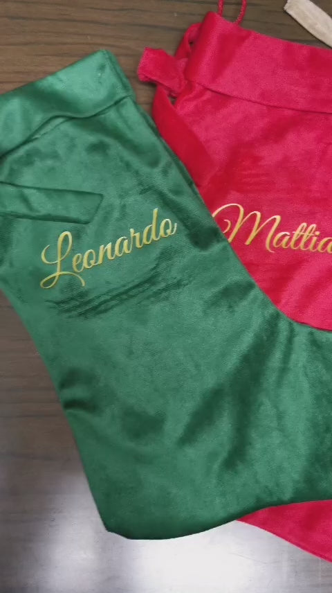 Rendi unica la tua festa di Natale con la calza in velluto personalizzabile. Fatta a mano con cura, disponibile in tre colori: rosso, verde e beige. Aggiungi il nome per un tocco personale. Impreziosisci la tua tradizione natalizia con stile!